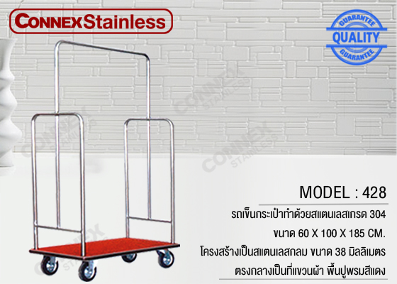 รถเข็นกระเป๋าทำด้วยสแตนเลส มีพรมให้เลือก 3 สี